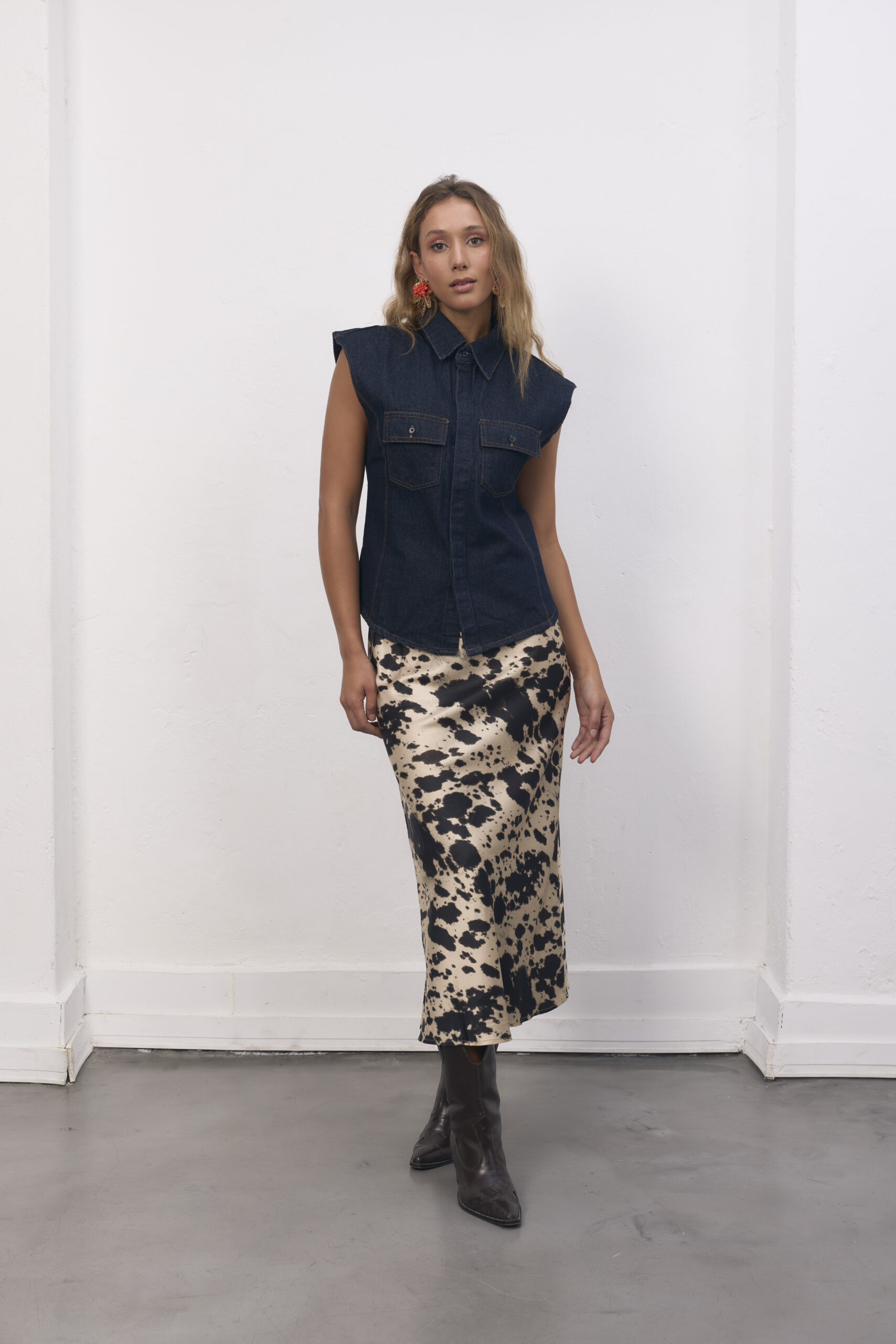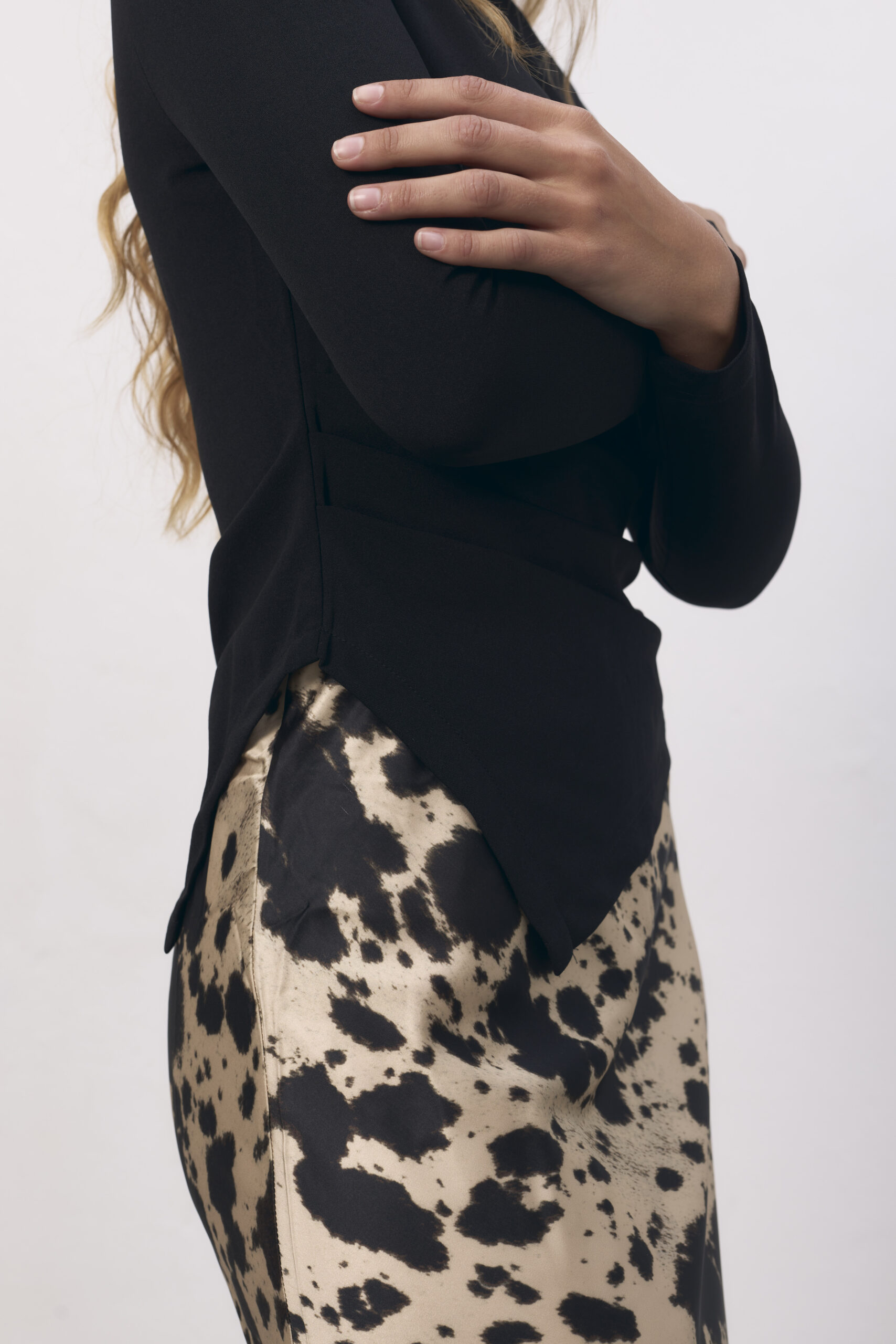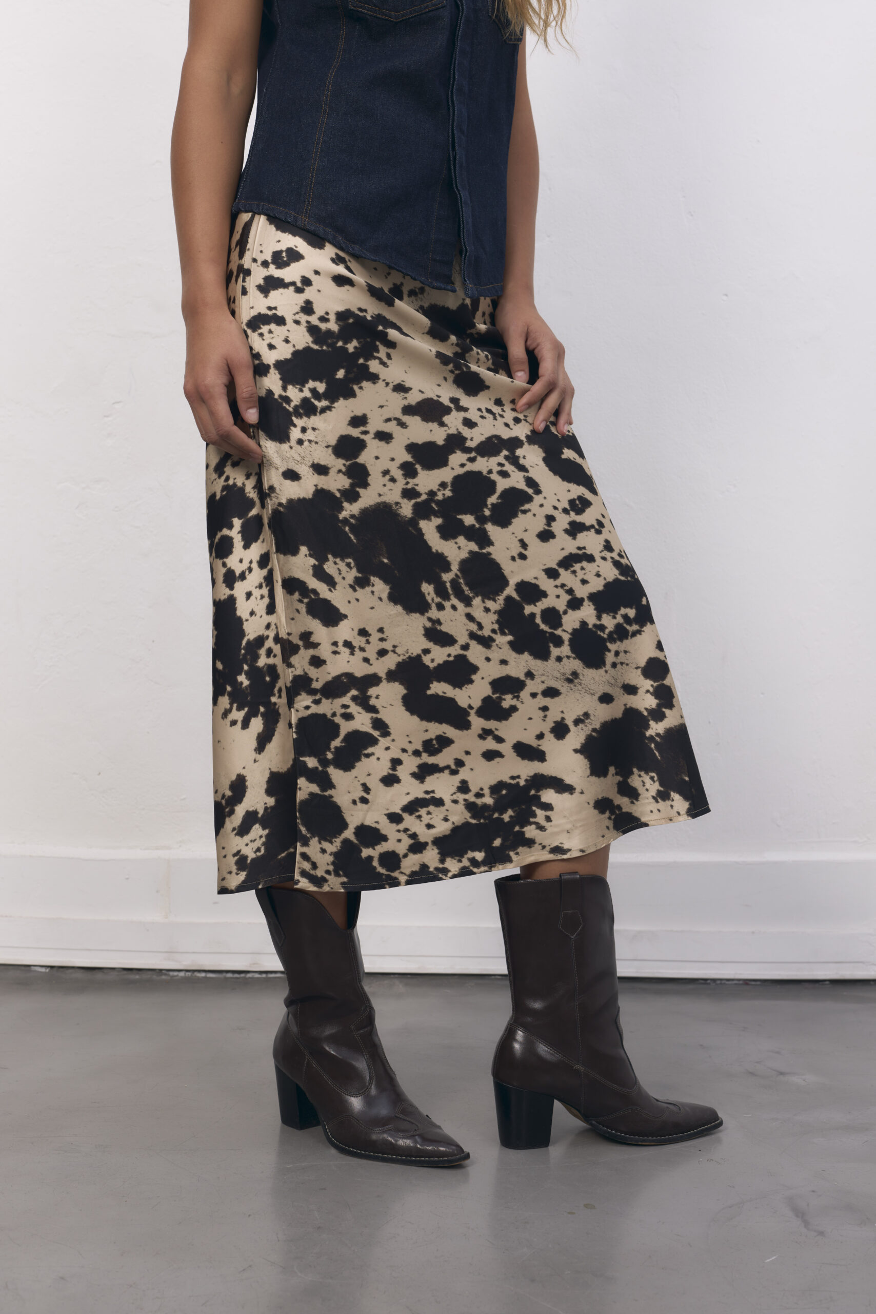 Falda de saten larga, estampada.